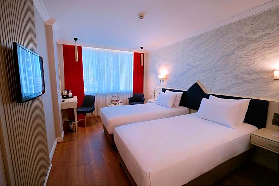 Our Deluxe Rooms, each of which is at least 66 ft² , are a symbol of Dedeman hospitality with their comfortable as well as elegant decoration. Deluxe Rooms are available in your choice of French Bed, two twin or one single bed, and feature a flat screen LCD TV with satellite, along with mini-bar and in-room safe. In addition to the standard amenities, Deluxe Rooms also feature city views as well as a spacious bath with complimentary luxury bath products, the perfect accompaniment to a relaxing soak in your room’s bathtub.